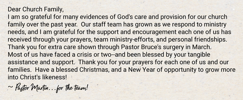 When I ventured across the country from the comforts of my family home to attend Bible College as a green 17-year-old, I could never have anticipated the faith-adventures God had in store for me—which have now included a brief stint in pastoral ministry in my then-home-church in Bridgewater Nova Scotia, to 12 years as an Associate Pastor in downtown Peoples Church of Montreal, to now having served over 23 years here at Grace Gospel Church. I love our church as well as our denominational family, the Associated Gospel Churches. My wife Rebecca and I raised our four children here, and have seen them venture into their chosen paths of education and career. Family life (now grown by two daughters-in-law, two granddaughters, and two grand-dogs!) brings many smiles and prayers for the extension of our faith to a new generation; and it has kept our faith in the Lord Jesus Christ grounded and growing.